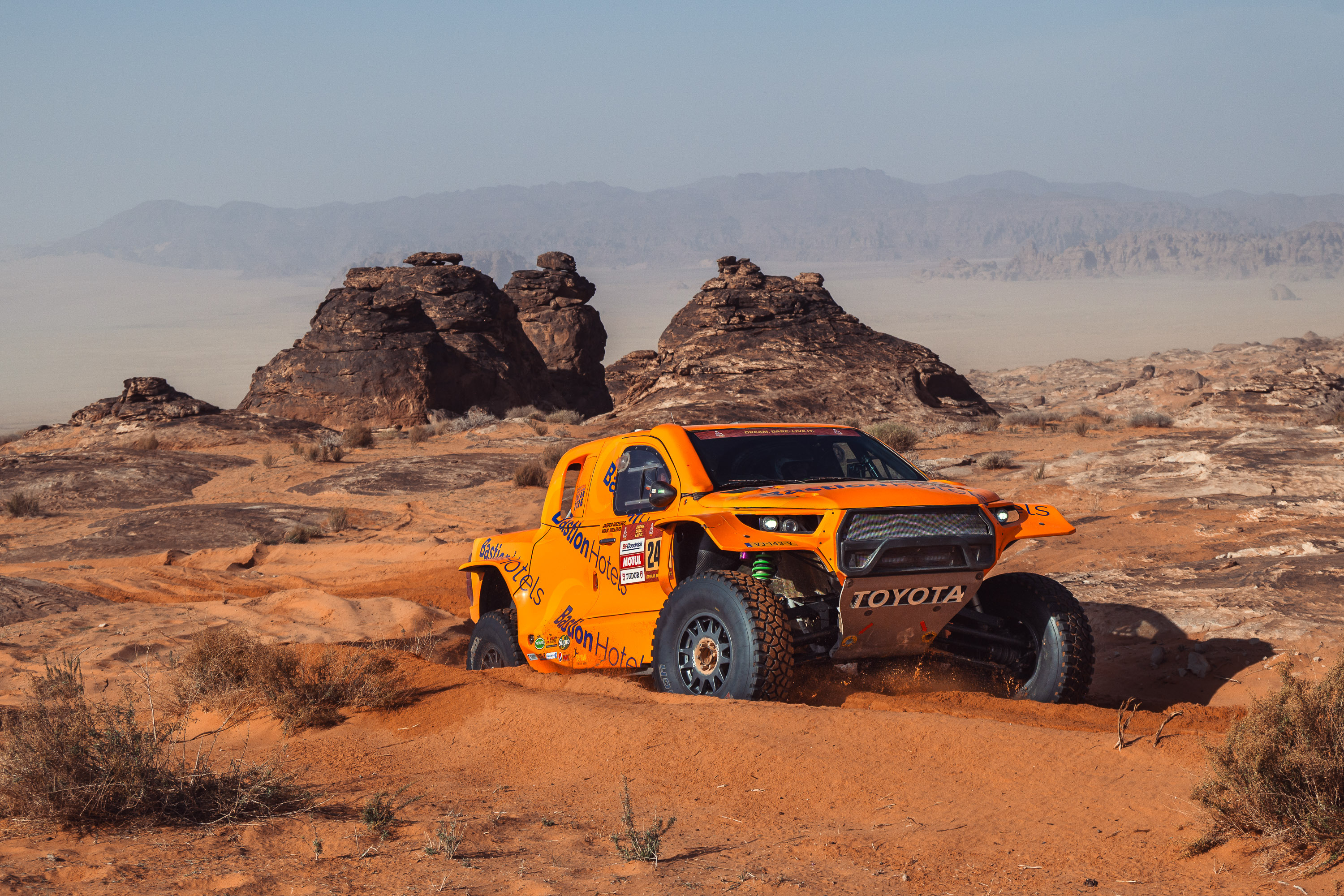 Hij vertelde het monter, donderdag, nadat hij zonder noemenswaardige problemen het bivak in Hail had gehaald. Maar woensdag had ook Willems afgezien, bekende hij. “Het was een loeizware dag. Een echt ouderwetse Dakar-dag, iedereen was uitgewoond toen ze in het bivak kwamen. Stenen, stenen, stenen. Het was gewoon stevig.”
