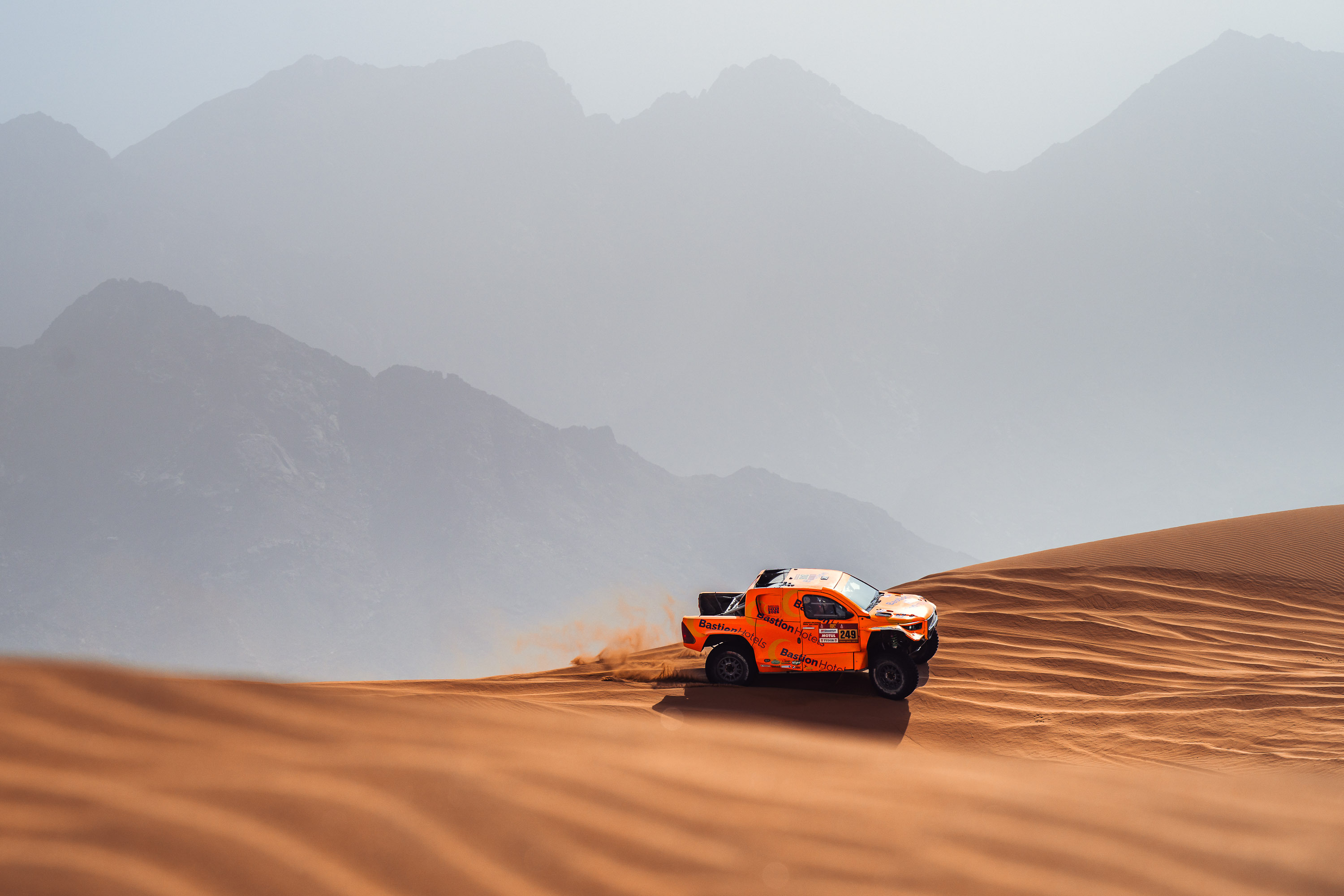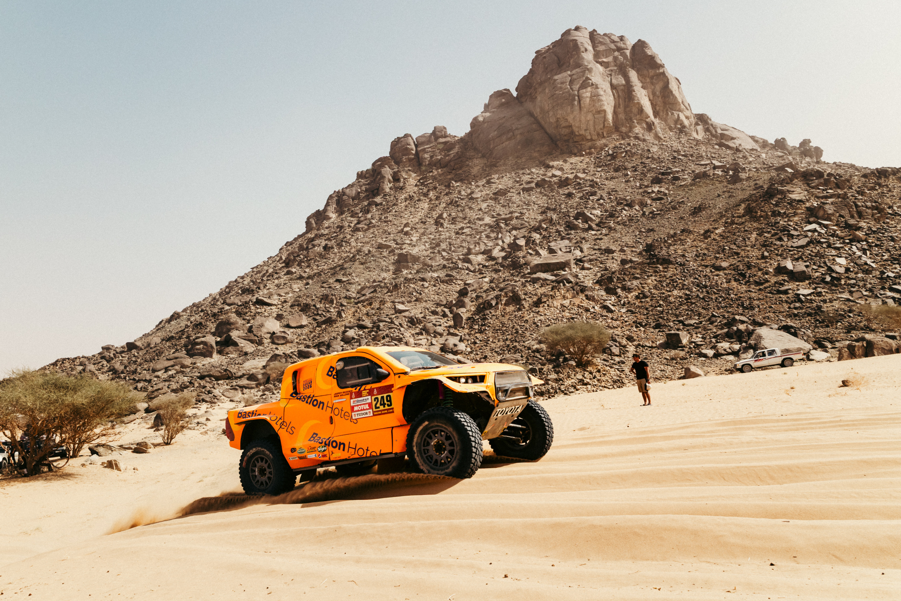 Onze fantastische monteurs konden vandaag mooi aansluiten bij de start, die lag namelijk op de route naar het bivak van Yanbu en die mogelijkheid lieten ze zich zeker niet ontnemen. Het bivak in Yanbu is ook de plaats waar de rally morgen gaat eindigen na een korte proef van 105 kilometer, die ook nog eens in twee delen is geknipt met een stukje neutralisatie ertussen. De ervaring leert dat er elke Dakar toch nog wel deelnemers in de problemen komen in die allerlaatste - meestal niet heel lang of lastige - etappe. En dat is natuurlijk niet de bedoeling, we gaan morgen voor de finish en de medaille!